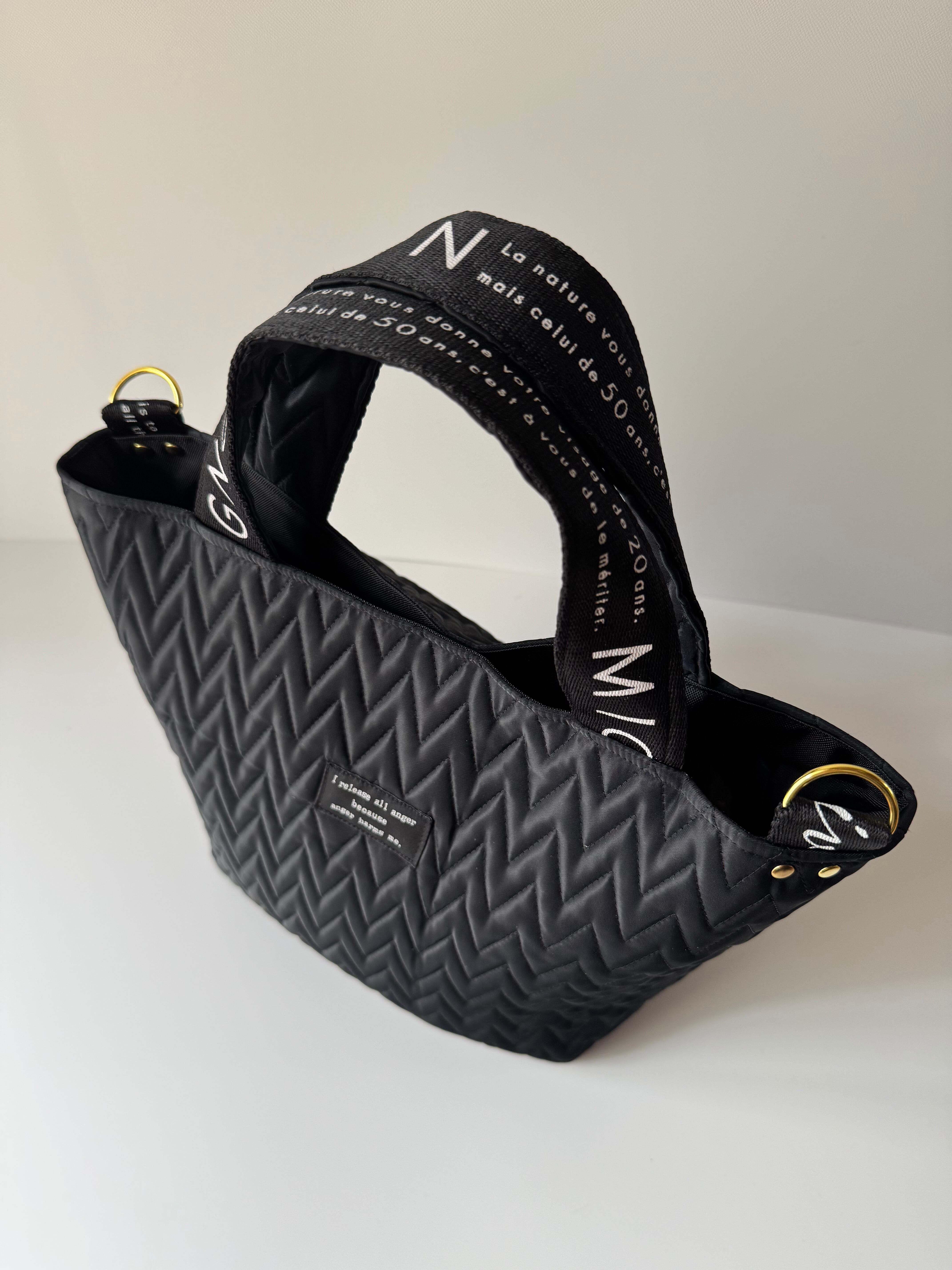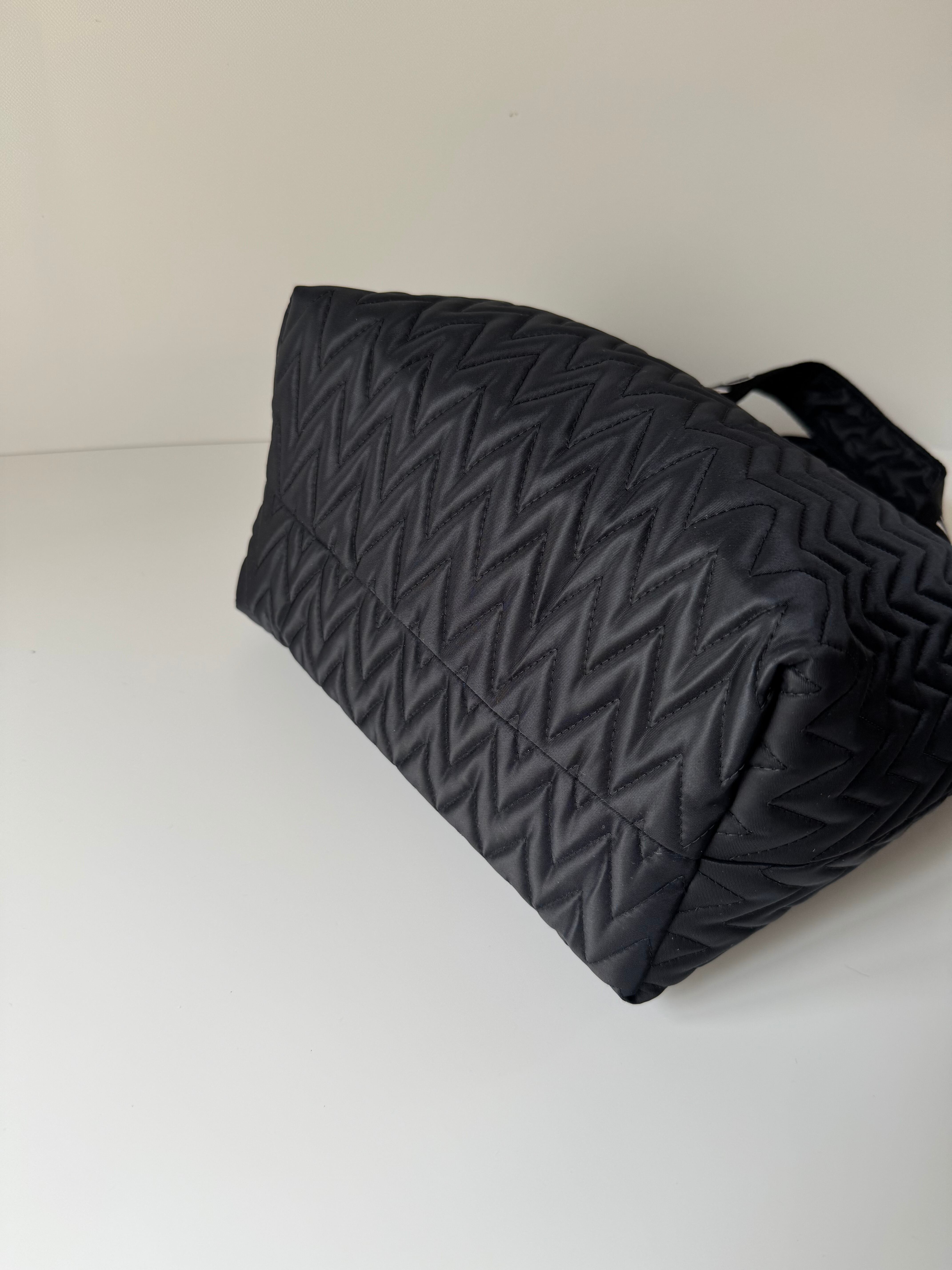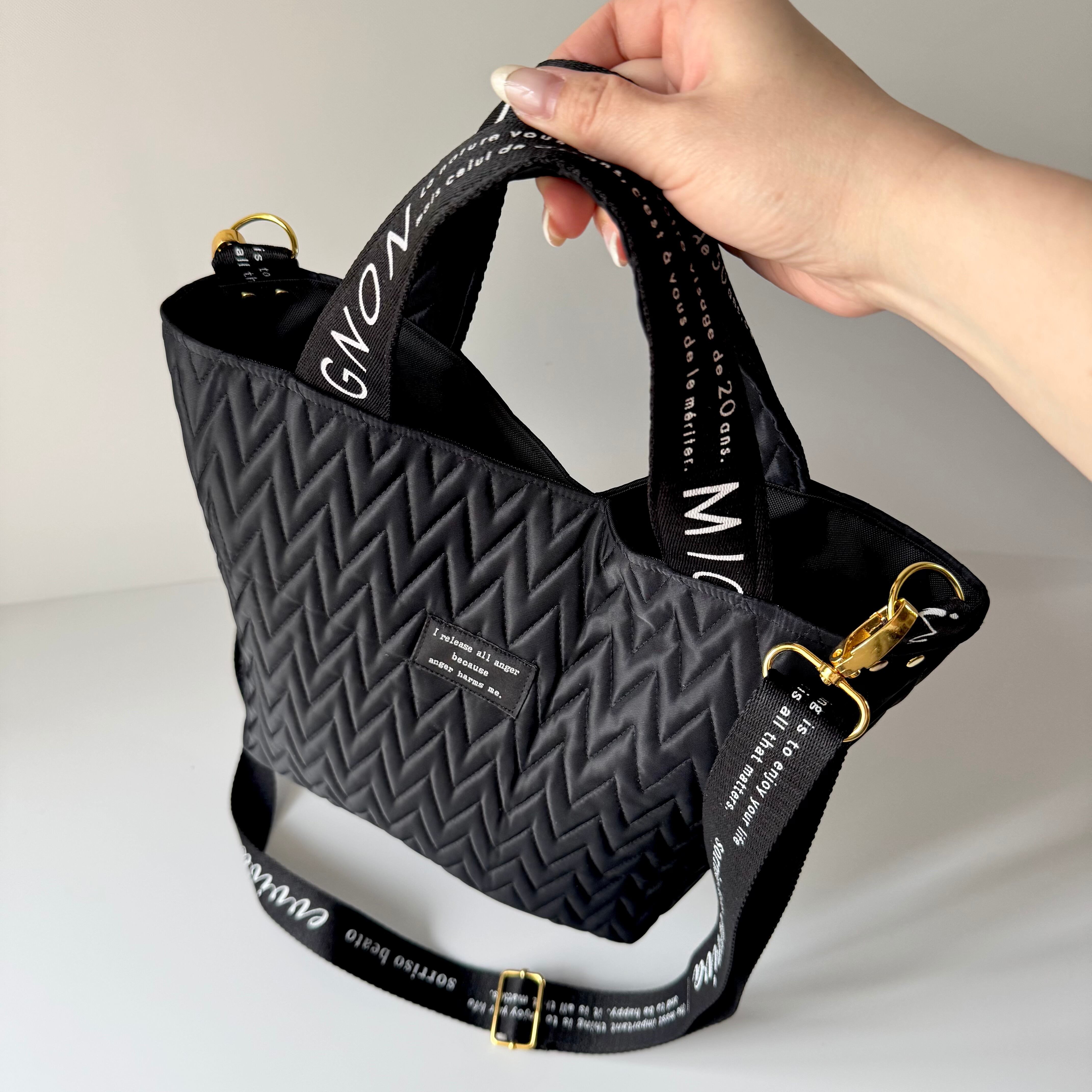 :バッグ本体のキルトの立体感が上品なアクセントに。